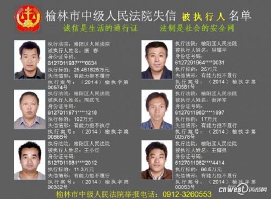 據(jù)榆林市中級人民法院副院長滿德利介紹,《最高人民法院關(guān)于公布失信被執(zhí)行人名單信息的若干規(guī)定》實(shí)施以來,市中院分別于2015年1月14日公布了49名失信被執(zhí)行人信息,內(nèi)容包括身份證號碼、照片等重要內(nèi)容,涉案總標(biāo)的近5億元。2015年4月23日又公布了第二批96名失信被執(zhí)行人信息,涉案總標(biāo)的為2.5億元。失信被執(zhí)行人名單公布后,在社會上引起極大反響,涉案被執(zhí)行人也受到震懾,其中數(shù)名被執(zhí)行人主動聯(lián)系法院,全部或部分履行了義務(wù)。