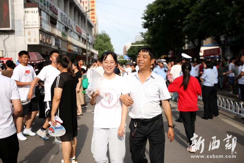 考場上,考生奮筆疾書,考點外,公安交警、電力系統(tǒng)、市場監(jiān)管局、愛在人間志愿者協(xié)會等多支隊伍為高考保駕護航,多家愛心商鋪為考生和家長免費提供飲用水、扇子、紙巾等物品。