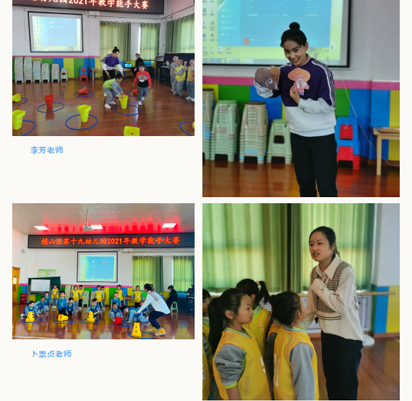 本次比賽教師根據(jù)自己的教學(xué)經(jīng)驗(yàn)、知識(shí)背景、情感體驗(yàn)及對(duì)教材的不同理解、策略的不同選擇,塑造出各具特色的創(chuàng)造性集體教學(xué)模式。每位教師以飽滿的精神狀態(tài),盡情展現(xiàn)自己的專業(yè)能力,將教學(xué)與游戲相融合,呈現(xiàn)了獨(dú)具特色的教育實(shí)踐活動(dòng)。