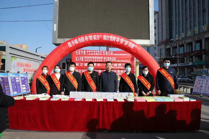 活動(dòng)現(xiàn)場(chǎng)工作人員通過(guò)布置展板、發(fā)放宣傳手提袋、抽紙、宣傳手冊(cè)、彩頁(yè)及現(xiàn)場(chǎng)咨詢解答等形式向群眾宣傳《陜西省社會(huì)信用條例》《陜西省優(yōu)化營(yíng)商環(huán)境條例》等相關(guān)知識(shí),對(duì)誠(chéng)信經(jīng)營(yíng)、信用修復(fù)、“信易貸”推廣注冊(cè)等內(nèi)容進(jìn)行了宣講,現(xiàn)場(chǎng)共發(fā)放手提袋500個(gè)、抽紙1000盒、《條例》各500本、信用修復(fù)、信用小知識(shí)等五類宣傳彩頁(yè)共5000張;同時(shí)向廣大市民普及了“信用榆林”APP的惠民便企舉措,并引導(dǎo)市民下載使用,享受守信激勵(lì)優(yōu)惠政策;圍繞府谷縣“營(yíng)商環(huán)境突破年”六大專項(xiàng)行動(dòng)的工作部署、進(jìn)展動(dòng)態(tài)和特色成效開(kāi)展宣傳;公布了榆林市營(yíng)商環(huán)境投訴舉報(bào)渠道和流程,鼓勵(lì)企業(yè)和群眾通過(guò)“榆林營(yíng)商”小程序主動(dòng)反映損害營(yíng)商環(huán)境的問(wèn)題,積極提出改善榆林市營(yíng)商環(huán)境的意見(jiàn)建議。