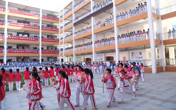 各班同學(xué)在班主任的引領(lǐng)下,帶著家長的希望和老師的祝福再過教學(xué)區(qū),為初中三年的拼搏努力畫上完美的句號,踏上新征程。