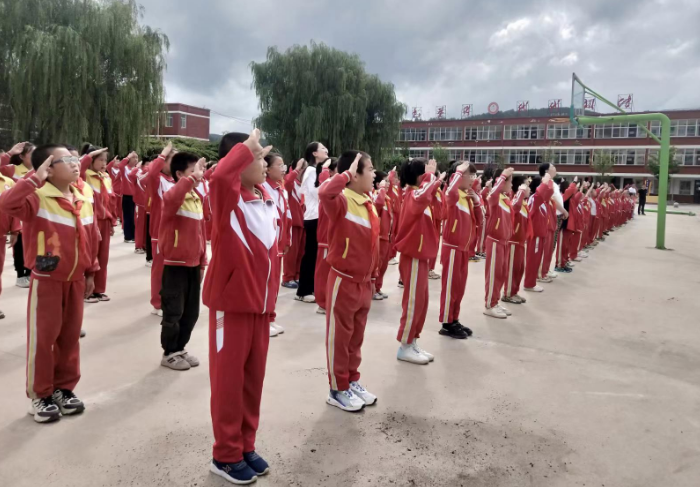 在富縣北道德中心小學(xué),伴隨著雄壯的國(guó)歌聲,鮮艷的五星紅旗冉冉升起,全體師生列隊(duì)肅立,向國(guó)旗行注目禮,共同迎接新學(xué)期的開始。六年級(jí)學(xué)生廖俊豪在國(guó)旗下講述了紅色故事《榆林橋戰(zhàn)役》,各班級(jí)組織了以“珍愛生命,安全伴我行”的主題班會(huì)教育活動(dòng)。