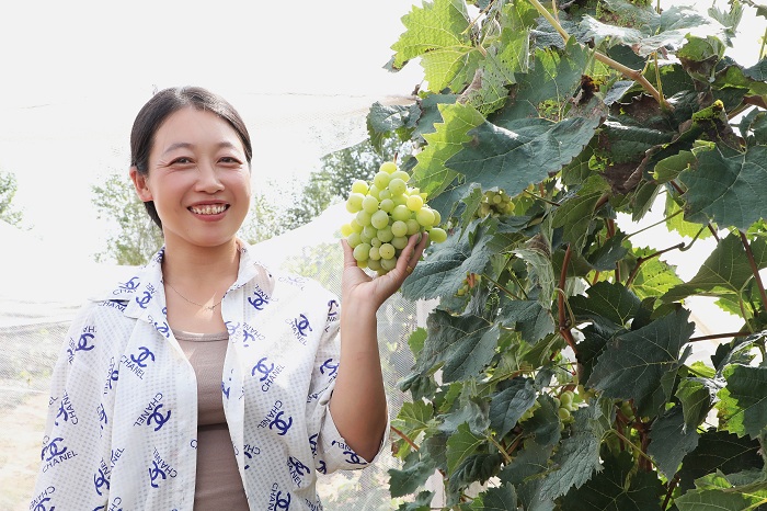 “我們村里種植葡萄面積大概有七百多畝,現(xiàn)在正值葡萄采摘旺季,大量葡萄已經(jīng)成熟,我們的葡萄純屬自然果,不用膨大劑、防腐劑、無(wú)核化處理,所以有種自然的香甜味?!濒~(yú)河鎮(zhèn)許家崖村種植戶(hù)高慧玲說(shuō)。