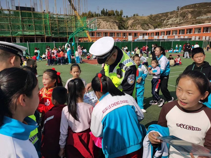 為進(jìn)一步做好校園周邊道路交通管理工作,有效提高廣大師生和家長的交通安全意識和防護(hù)能力。10月15日,府谷縣大昌汗交警中隊走進(jìn)老高川學(xué)校開展交通安全宣傳活動。