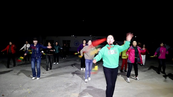 黃昏時(shí)分,阿黨鎮(zhèn)唐呼村的村民們忙了一天又聚在村里的廣場(chǎng)上,在霸王鞭縣級(jí)傳承人高紅梅的帶領(lǐng)下,伴著點(diǎn)點(diǎn)星辰和路燈,揮舞著手中的霸王鞭,緊張地排練。