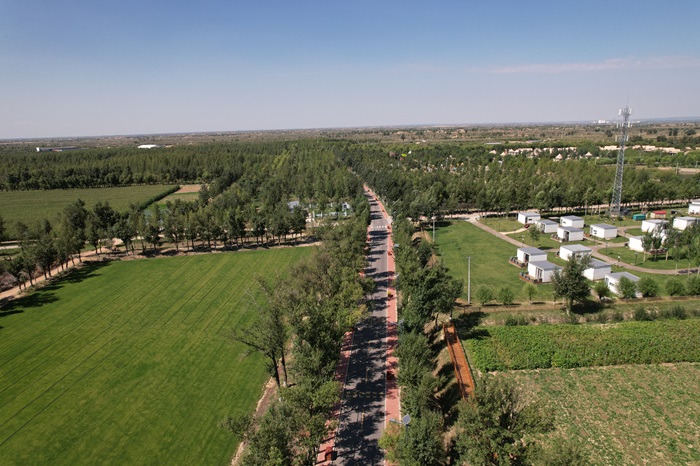 “魏省路是一條助民增收的富民路,在促進旅游業(yè)發(fā)展的同時,也為周邊群眾帶來收入。游客通過魏省路來到補浪河女子民兵治沙連,了解女民兵們50年來堅持不懈治沙的事跡,感悟自力更生、艱苦創(chuàng)業(yè)、團結(jié)協(xié)作、創(chuàng)新進取的治沙精神。目前,每年將近有15萬游客前來參觀學(xué)習(xí),已成為生態(tài)建設(shè)的一張名片。”榆林市榆陽區(qū)大漠軍旅文化園管理有限責任公司辦公室主任高健介紹。