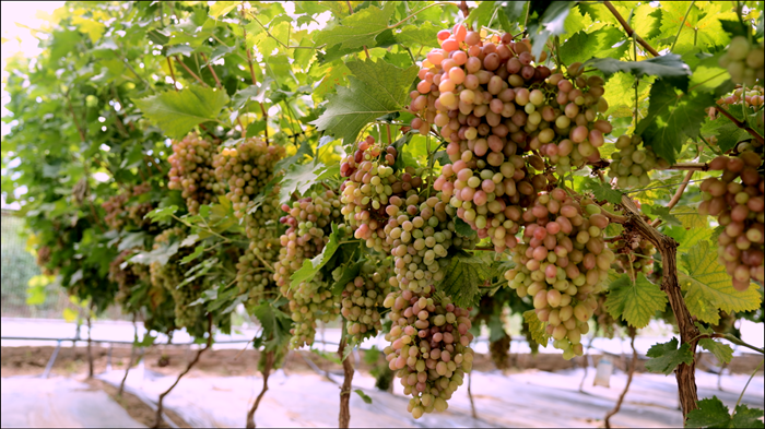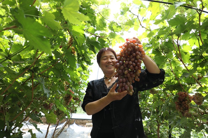 “我今年種了四棚葡萄,葡萄的品相好種類多,現(xiàn)在村里的路都翻修好了,來采摘的人也比以前多了,我一年能收入十多萬元。”葡萄種植戶王紅梅說。