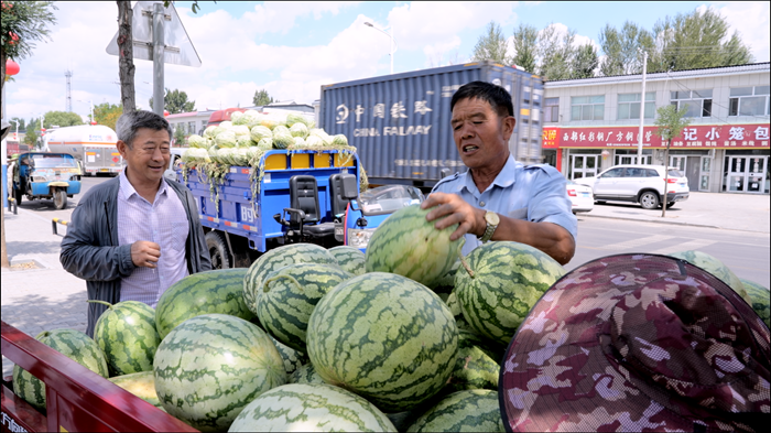 “我是從山東濟南專程過來采購榆陽區(qū)巴拉素鎮(zhèn)西瓜,巴拉素西瓜生長在沙地,口感又甜又脆,在我們那里非常受市場青睞,評價特別好,現(xiàn)在這里是我每年的固定采購點?!鄙綎|客商盧其光說。