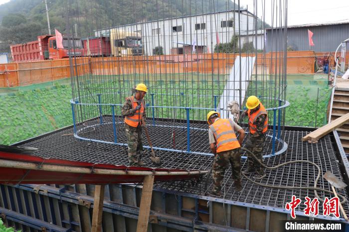 圖為施工人員進行混凝土澆筑。 (中鐵上海工程局供圖)