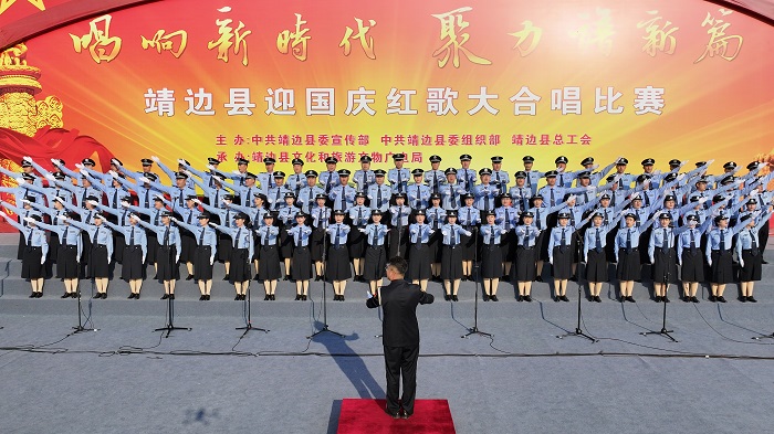 9月27日,由中共靖邊縣委宣傳部、中共靖邊縣委組織部、靖邊縣總工會主辦,靖邊縣文化和旅游文物廣電局承辦的“唱響新時代·聚力譜新篇”靖邊縣迎國慶紅歌大合唱比賽在城市運動公園舉行。