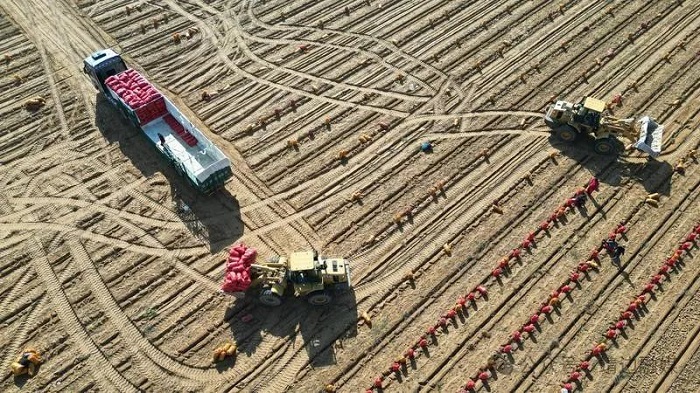 眼下正是馬鈴薯收獲季。在陜西省榆林市靖邊縣大大小小的馬鈴薯種植基地,各類農(nóng)業(yè)社會化服務(wù)組織活躍其間,成為馬鈴薯收獲的“主力軍”。