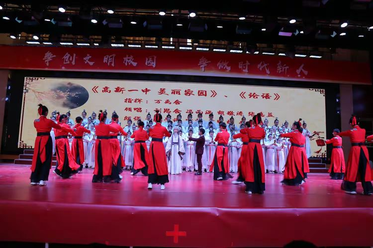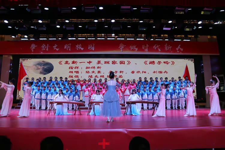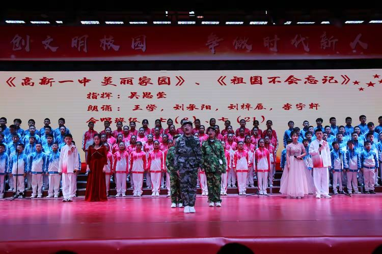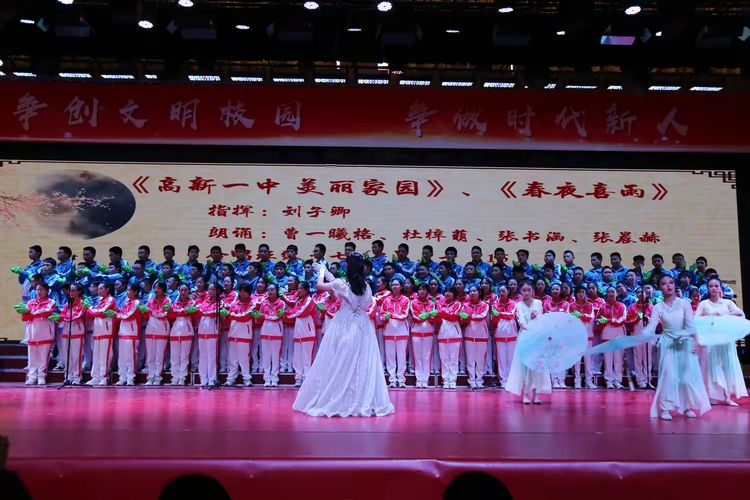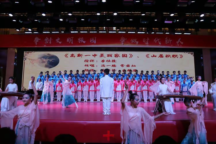七年級(jí)1班、14班帶來的合唱《高新一中美麗家園》和《山居秋暝》,讓我們感受到了“明月松間照,清泉石上流”的靜謐。