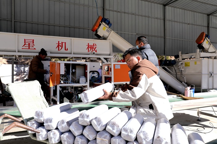 連日來,在府谷縣田家寨鎮(zhèn)經(jīng)濟聯(lián)合總社的菌棒生產(chǎn)車間,技術人員熟練地進行拌料、裝袋、碼棒、滅菌,現(xiàn)場一派繁忙有序的景象,產(chǎn)業(yè)豐收“前奏曲”正在這個生機勃勃的春日悄悄奏響。
