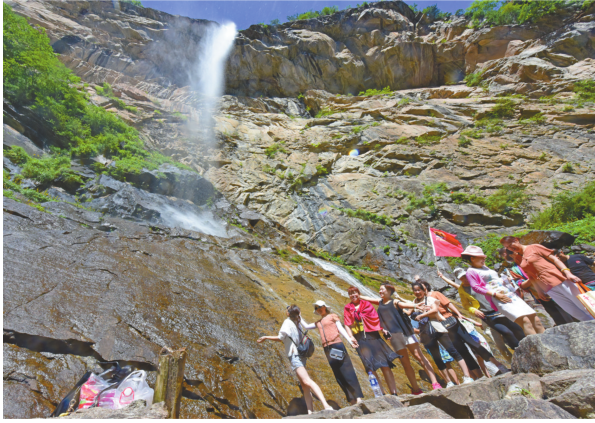 太白縣青峰峽景區(qū)青鳳瀑布游人多