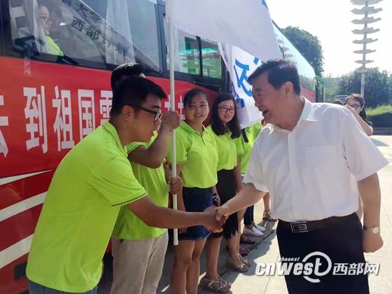 陜西省人大常委會(huì)副主任李金柱為2016年大學(xué)生志愿服務(wù)西部計(jì)劃陜西服務(wù)總隊(duì)授旗。