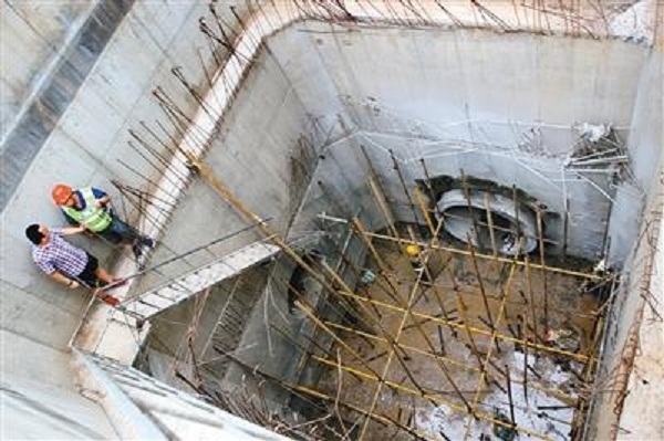 雖然天空中飄著小雨,但小寨西路與朱雀大街東南角的一座13米深的管道檢查井依然在緊張施工中?!澳媳眱蓚雀?00多米的管道已經(jīng)全部安裝到位,我們上午剛剛拆除了下半部分的樓梯,拆完后將開始底面澆筑。”現(xiàn)場施工負責人張勇說,工程沿著朱雀大街兩側開展,分東、西兩部分。其中,東側為110KV高壓管溝,直徑為2米;西側為330KV高壓管溝,直徑為3.5米。截至目前,土建部分已完成40%。其中路東已實現(xiàn)了全線90%貫通。