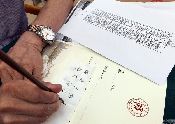 馬教授:今年大概要寫4500多份本科生的錄取通知書,主要有7名老師參與,大概五六天時(shí)間完成。我們這7名主力老師,平均年齡在75歲左右,我70歲,在里面算年輕的,還有3名80多歲的老教授。