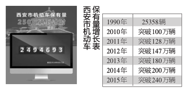 在2014年7月,西安機動車保有量突破200萬輛時,在全國機動車保有量超過200萬輛的15個城市中,西安還排在第11位;在今年將突破250萬輛時,西安已名列第9位了。