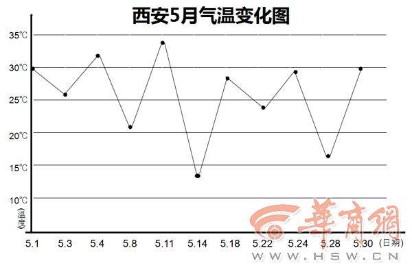 西安5月份氣溫變化圖 (注:圖中溫度為當(dāng)日最高溫)