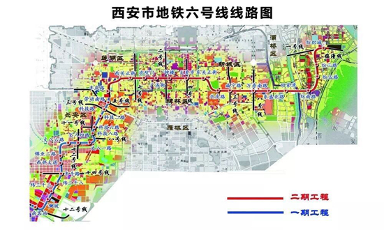 地鐵六號(hào)線一期工程南客站~勞動(dòng)南路站段,線路全長20.13公里,均為地下線。線路沿興隆一路、西太路、亞迪路、錦業(yè)路、唐延路、高新路敷設(shè),在科技路站與3號(hào)線換乘后,止于勞動(dòng)南路并與5號(hào)線換乘。全線設(shè)車站15座,均為地下站,設(shè)車輛段一處,新建主變電所一座。該工程于2011年開始方案研究工作,2013年12月國家發(fā)改委審批通過建設(shè)規(guī)劃,2015年4月陜西省發(fā)改委批復(fù)工程可行性研究報(bào)告,2015年11月陜西省發(fā)改委批復(fù)初步設(shè)為計(jì)方案。于2016年開工,2020年通車試運(yùn)營。