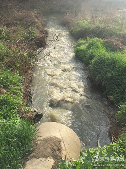 直排的污水如脫韁的野馬。陜西日報記者 喜順 攝