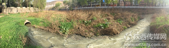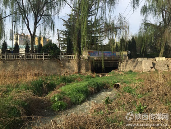 在雜草叢生的河道里,若不經意,你或許還不會看到這個排污水口。陜西日報記者 喜順 攝