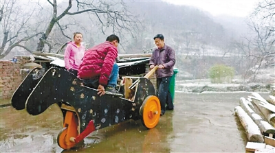 達(dá)喜全告訴記者,下一步他將研制雙驅(qū)雙輪,再完善“木牛流馬”的馬頭、馬身,讓來(lái)眉縣的游客騎乘。