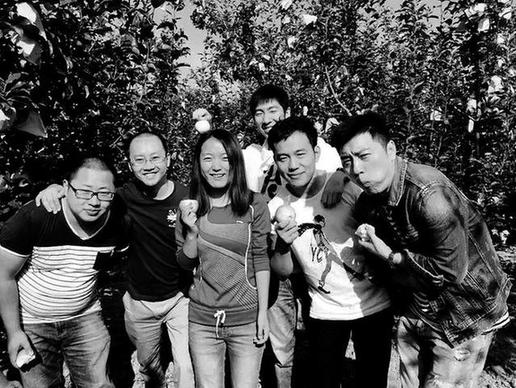 朋友們千里迢迢來到淳化農(nóng)村,與種蘋果的劉阿娟在果園合影留念(資料圖片)
