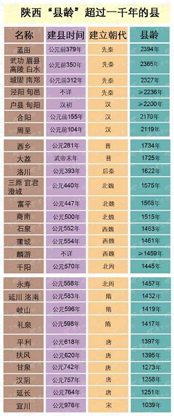 2015年8月4日,高陵“撤縣設(shè)區(qū)”正式掛牌,至此,高陵結(jié)束了2365年的縣制歷史。2365是一個(gè)不小的數(shù)字,這個(gè)數(shù)字證明了高陵漫長(zhǎng)的縣制歷史。然而在陜西,縣制歷史最長(zhǎng)的并不是高陵。華商網(wǎng)小編通過(guò)搜集整合陜西79個(gè)縣的縣制資料,告訴你陜西各個(gè)縣的神奇縣制故事。