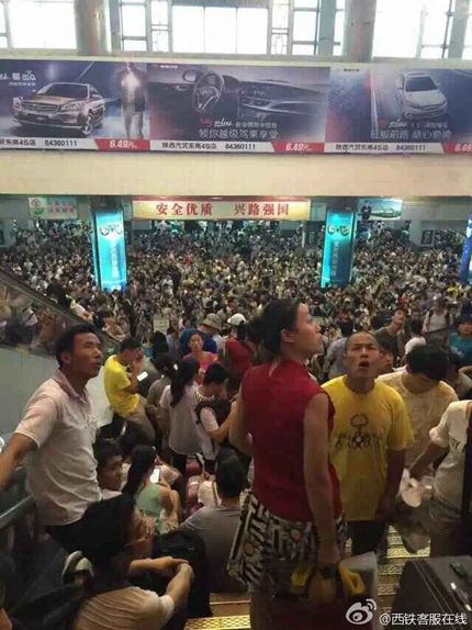 目前西安車站候車大廳滯留的旅客已經(jīng)遠(yuǎn)遠(yuǎn)超出負(fù)荷,為了保證旅客們的安全,建議有出行需要的旅客盡快辦理退票手續(xù),選擇其他方式出行,避免耽誤行程。