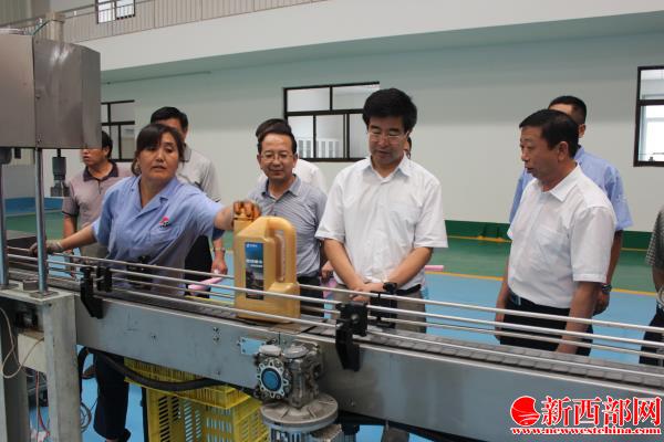 榆陽區(qū)區(qū)委書記苗豐(前排右二)調(diào)研金帝潤(rùn)滑油項(xiàng)目生產(chǎn)線