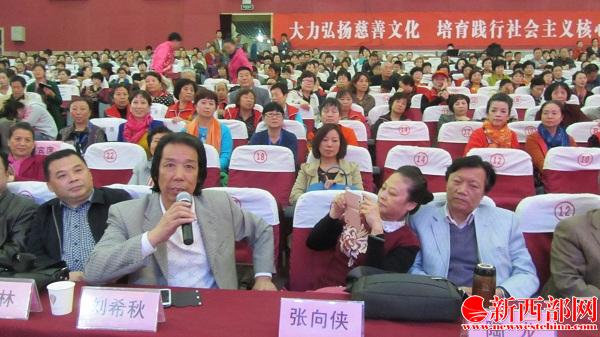 由陜西省慈善協(xié)會和陜西省音樂家協(xié)會聯(lián)合主辦的2014全省“愛心歌曲大家唱”群眾歌詠演唱大賽10月23日上午在西安舉行。前排左一系陜西省慈善協(xié)會副會長孫忠信,前排左二系《陜慈快訊》總編輯胡運森。新西部網(wǎng) 王順利攝