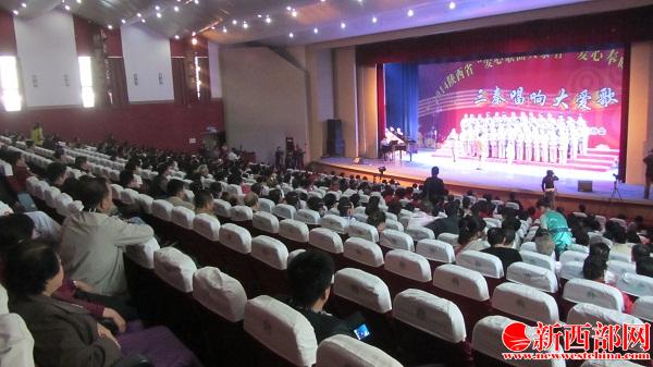 由陜西省慈善協(xié)會和陜西省音樂家協(xié)會聯(lián)合主辦的2014全省“愛心歌曲大家唱”群眾歌詠演唱大賽10月23日上午在西安舉行。新西部網(wǎng) 王順利攝