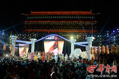 2014年10月20日晚,首屆絲綢之路國際電影節(jié)開幕式在西安南門甕城內(nèi)舉行。陜籍著名演員閆妮作為本次國際電影節(jié)的形象大使,率先從南門廣場進入甕城。
