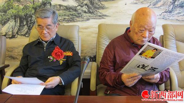榮譽(yù)會(huì)長(zhǎng)、陜西省原副省長(zhǎng)張斌(右),會(huì)長(zhǎng)、中國(guó)人民解放軍總政治部宣傳原部長(zhǎng)屈全繩中將。新西部網(wǎng) 王順利攝