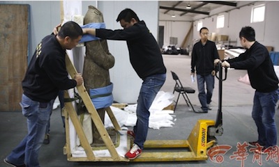 點(diǎn)交完成后,需要對文物進(jìn)行包裝、裝箱。陜西華協(xié)國際珍品貨運(yùn)服務(wù)有限公司的副總經(jīng)理祝永紅說,每件文物的包裝都享受私人定制。