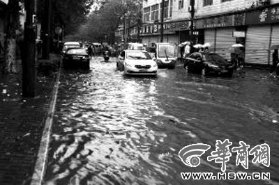 路面積水百米長(zhǎng) 街辦數(shù)十人守住下水井幫疏導(dǎo)