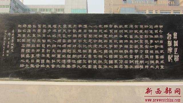 “絲綢之路起點(diǎn)”碑文特邀周學(xué)敏教授撰文,鄒西京教授書寫。王順利攝