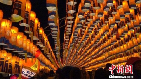 西安城墻上的祈愿燈廊。 黨田野 攝
