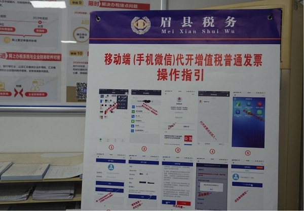據(jù)介紹,這是眉縣稅務(wù)局落實“放管服”改革,解決納稅人代開、領(lǐng)取發(fā)票等堵點問題的舉措。