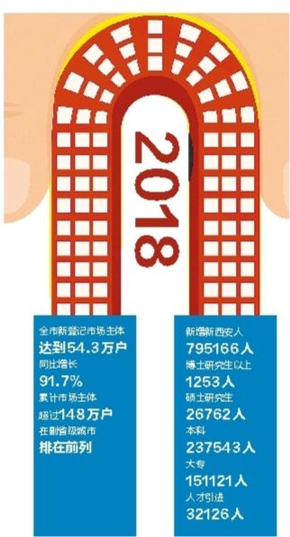 優(yōu)秀的創(chuàng)業(yè)平臺(tái)、優(yōu)質(zhì)的創(chuàng)業(yè)政策,創(chuàng)業(yè)之巢已筑好,創(chuàng)客們自然蜂擁而來(lái)。據(jù)西安市人民政府網(wǎng)站上公布的數(shù)據(jù)顯示,2018年西安市全市新登記市場(chǎng)主體達(dá)到54.3萬(wàn)戶,同比增長(zhǎng)91.7%;累計(jì)市場(chǎng)主體超過(guò)148萬(wàn)戶,在副省級(jí)城市排在前列。