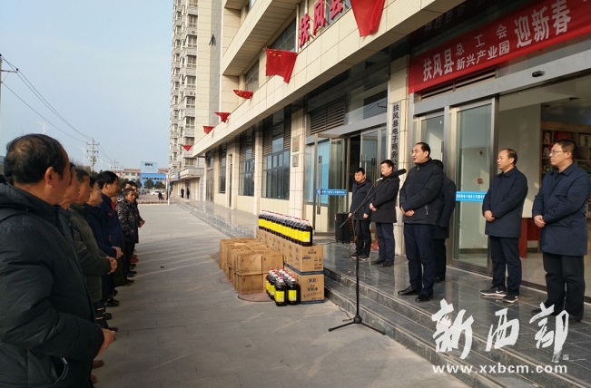 1月14日上午,市委常委、縣委書(shū)記周宇松,縣政協(xié)主席李拴鎖,縣委副書(shū)記傅宇,縣總工會(huì)主席王偉強(qiáng)一行深入縣新興產(chǎn)業(yè)園,為園區(qū)企業(yè)職工發(fā)放節(jié)日慰問(wèn)品100份,標(biāo)志著扶風(fēng)縣總工會(huì)2020年春節(jié)“送溫暖”活動(dòng)正式啟動(dòng)。