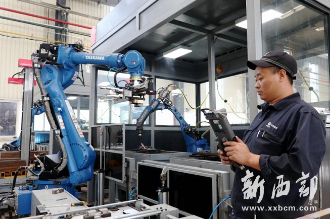 鐵路道岔是一種使機(jī)車車輛從一股道轉(zhuǎn)入另一股道的線路連接設(shè)備,也是中鐵寶橋的三大主要產(chǎn)品之一。長期以來,公司生產(chǎn)的鐵路道岔不僅滿足我國鐵路現(xiàn)代化建設(shè)的需要,而且出口到世界30多個國家和地區(qū),目前道岔年產(chǎn)量占據(jù)國內(nèi)市場的“半壁江山”。在推進(jìn)“智能制造”建設(shè)中,公司主動瞄準(zhǔn)道岔生產(chǎn)中加工效率較低、勞動強(qiáng)度較大、質(zhì)量波動較多的道岔墊板作為痛點、堵點和難點,投資數(shù)千萬元建設(shè)墊板生產(chǎn)廠房,引進(jìn)國內(nèi)一流的機(jī)器人,攻克自動化控制等10余項技術(shù)難題,建成了國內(nèi)首條鐵路道岔墊板自動化生產(chǎn)線,實現(xiàn)了墊板生產(chǎn)從下料、檢測、切割、焊接和搬運的全過程自動化,職工勞動強(qiáng)度大幅降低,生產(chǎn)效率提升三倍以上,引領(lǐng)我國鐵路道岔墊板制造從“半機(jī)械化”階段進(jìn)入“智能化”階段。