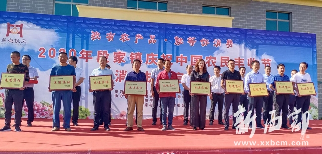 上午9:30啟動儀式正式開始,段家鎮(zhèn)黨委書記呂??浦罗o,響亮的提出了“我有農(nóng)產(chǎn)品,等你來消費”的活動主題。在熱烈的掌聲中,扶風(fēng)縣人民政府副縣長梁丹軍宣布第三屆慶祝農(nóng)民豐收節(jié)暨消費扶貧啟動儀式正式開始。當(dāng)日活動現(xiàn)場,電商企業(yè)、幫扶單位、苗木合作社、商會代表依次走上舞臺,與貧困村組、種養(yǎng)貧困戶簽訂了農(nóng)產(chǎn)品采購協(xié)議?,F(xiàn)場直銷采購獼猴桃、葡萄、雞蛋等扶貧產(chǎn)品3.2萬元;簽訂貧困戶雜果苗木銷售協(xié)議27萬元。啟動儀式上為決戰(zhàn)決勝脫貧攻堅優(yōu)秀集體頒發(fā)了獎牌。