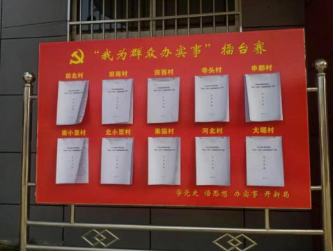 黨史學(xué)習(xí)教育開(kāi)展以來(lái),鳳翔區(qū)田家莊鎮(zhèn)以“1+10”工作機(jī)制指導(dǎo)各村黨支部認(rèn)真開(kāi)展“學(xué)黨史、勇?lián)?dāng)、我為群眾辦實(shí)事”實(shí)踐活動(dòng),并每周舉辦一次辦實(shí)事“擂臺(tái)賽”,將10個(gè)村黨支部的工作成效呈現(xiàn)出來(lái)。此舉也受到群眾稱贊。