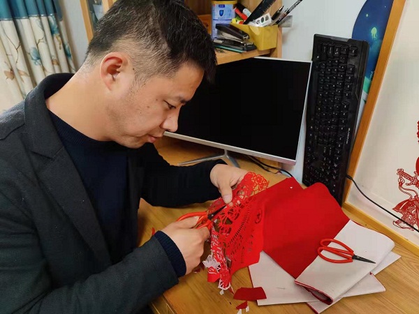一把剪刀、幾張紅紙,經(jīng)過疊折、勾勒、剪刻,一幅幅生動傳神、飽含深情的抗“疫”作品就躍然而出。