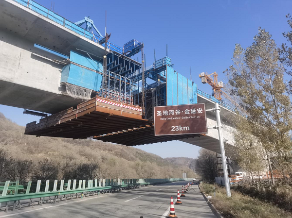 11月11日,西延高鐵首座跨高速公路百米連續(xù)梁楊家灣特大橋連續(xù)梁順利合龍。