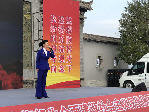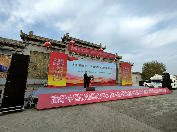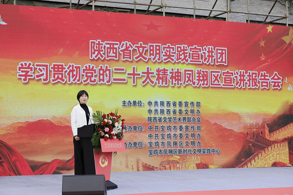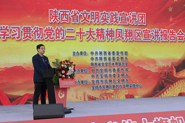 11月15日,由省委宣傳部、省委文明辦、省文聯(lián)組織的陜西省“文明實踐宣講團”走進鳳翔區(qū)城關(guān)鎮(zhèn)六營村。在六營村新時代文明實踐廣場,9名宣講團成員緊緊圍繞學(xué)習(xí)貫徹黨的二十大精神主題,把理論知識轉(zhuǎn)化成百姓話語,將“大理論”和“小故事”相結(jié)合,有新時代新征程創(chuàng)造新輝煌的理論宣講,有黨的二十大代表的精心分享,有干貨滿滿的惠民政策解讀,還有抑揚頓挫的朗誦、歡歌笑語的相聲、朗朗上口的快板等。