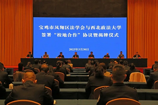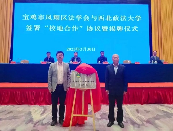 3月30日上午,鳳翔區(qū)法學(xué)會(huì)與西北政法大學(xué)簽署“校地合作”協(xié)議,并舉行“西北政法大學(xué)刑事法學(xué)院教學(xué)科研基地”“法治鳳翔與社會(huì)治理研究中心”揭牌儀式。市委常委、政法委書記趙甲宏出席會(huì)議并講話,西北政法大學(xué)副校長張軍政、區(qū)委書記王宏強(qiáng)致辭,省法學(xué)會(huì)黨組成員、秘書長樊志來,西北政法大學(xué)刑事法學(xué)院黨委書記孫學(xué)龍,陜西西鳳酒股份有限公司總經(jīng)理張周虎,西北政法大學(xué)刑事法學(xué)院副院長、刑事辯護(hù)研究院執(zhí)行院長劉仁琦出席會(huì)議。區(qū)委常委、政法委書記、區(qū)法學(xué)會(huì)會(huì)長郭亞波主持會(huì)議。