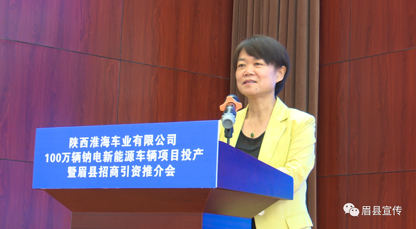 6月18日,陜西淮海車業(yè)100萬輛納電新能源車輛項目投產(chǎn)儀式暨眉縣招商引資推介會在縣委黨校召開?;春?毓杉瘓F董事長安繼文,淮??毓杉瘓F副總裁王國峰、韓運鎮(zhèn),縣委書記王繼萍,縣人大常委會主任戴慧萍,縣委常委、政法委書記張曉斌,副縣長田皓園,政協(xié)副主席孫鳳云,縣獼猴桃產(chǎn)業(yè)園區(qū)黨工委書記、管委會主任汪午強,太白山旅游區(qū)管委會副主任張新林、縣經(jīng)開區(qū)黨工委副書記孫偉參加活動??h長張小平主持。